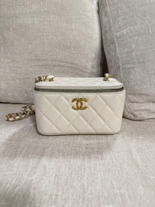 Chanel White Caviar Vanity Gold Hardware